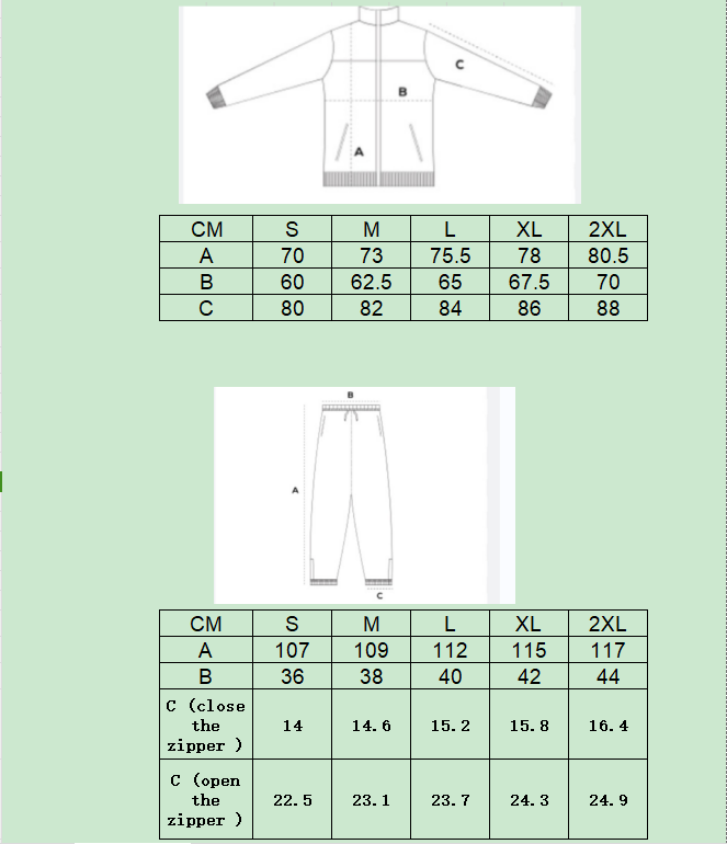 • Jogger-style pants with zippers at the bottom for an adjustable fit.